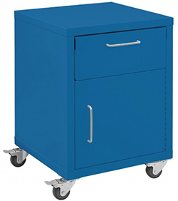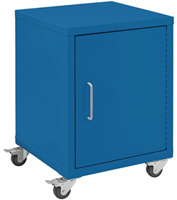 Heavy stainless steel handles match the stainless on drawer fronts, power strips and workbench detail. Sliding the doors is easy with our exclusive nylon wheels.