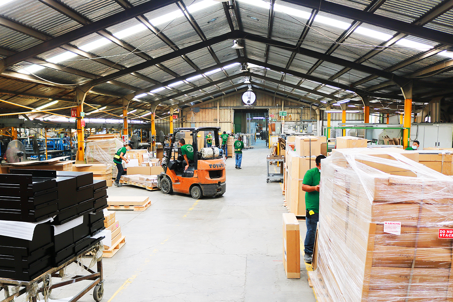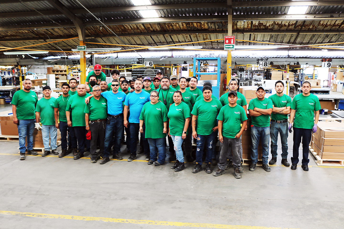 These 32 workers in our 25,000 square foot assembly attach the welded skirt to the top. After this, the user needs to insert one 3/8” diameter bolt to attach each leg.